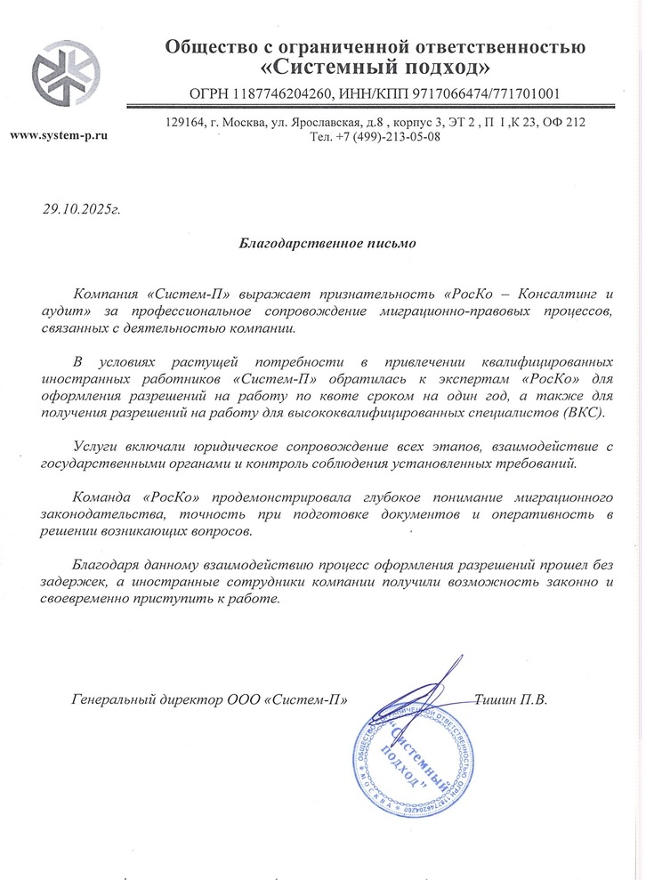 Оформление приглашения на въезд в РФ для иностранного сотрудника